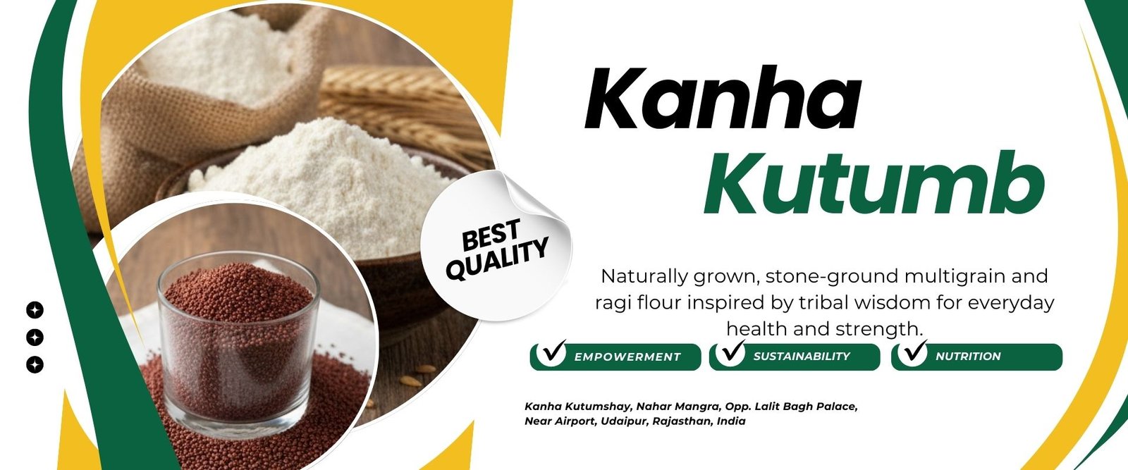At Kanha Kutumb, we are dedicated to bringing the richness of ancient grains and sustainable agricultural practices into your everyday life.Our flagship product, Kanha Kutumb Ragi Aata, is crafted from nine nutrient-rich grains, blending health, tradition, and sustainability into every bite.Rooted in the wisdom of tribal communities and the bounty of nature,our flour nourishes not just the body, but also the soul and the community.